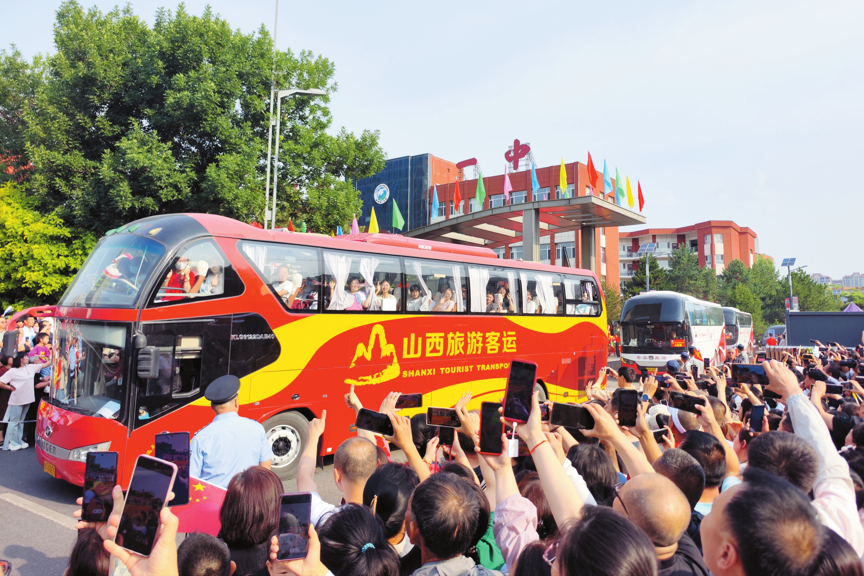 圖為忻州一中考點(diǎn),家長歡送考車駛出校門。張存良攝