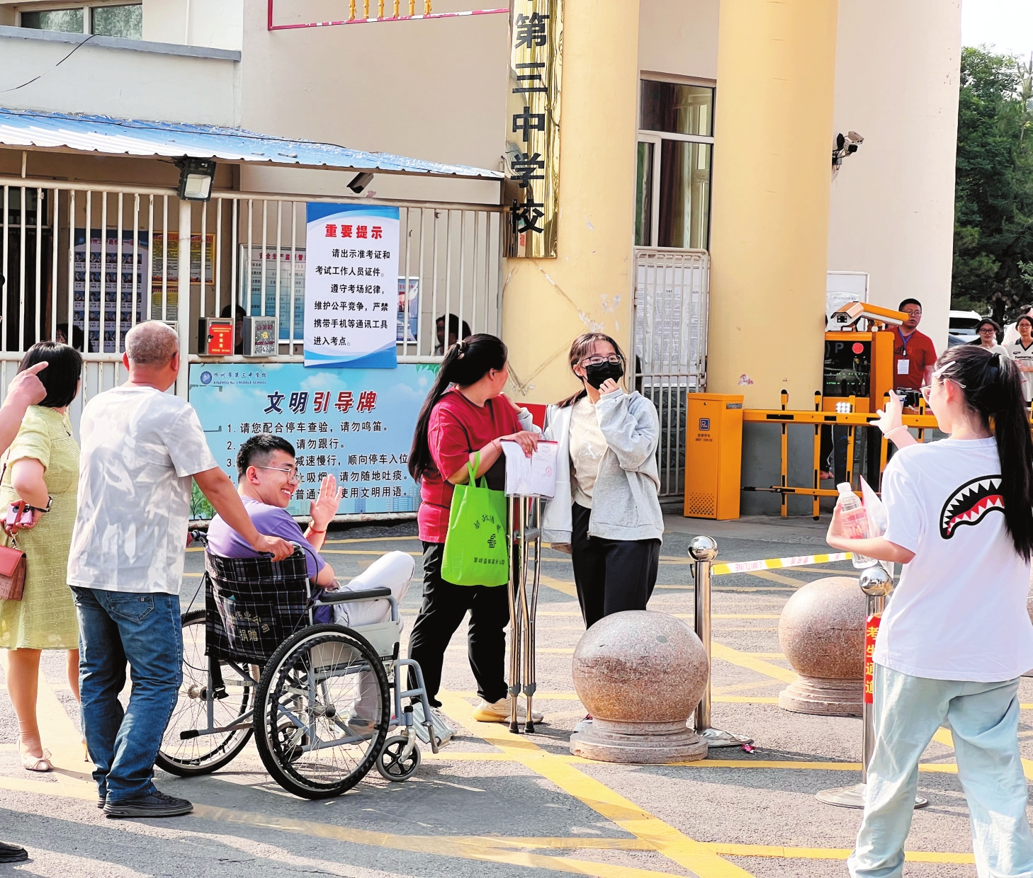 圖為忻州二中考點(diǎn),家長為考生送上美好祝福。趙菁攝