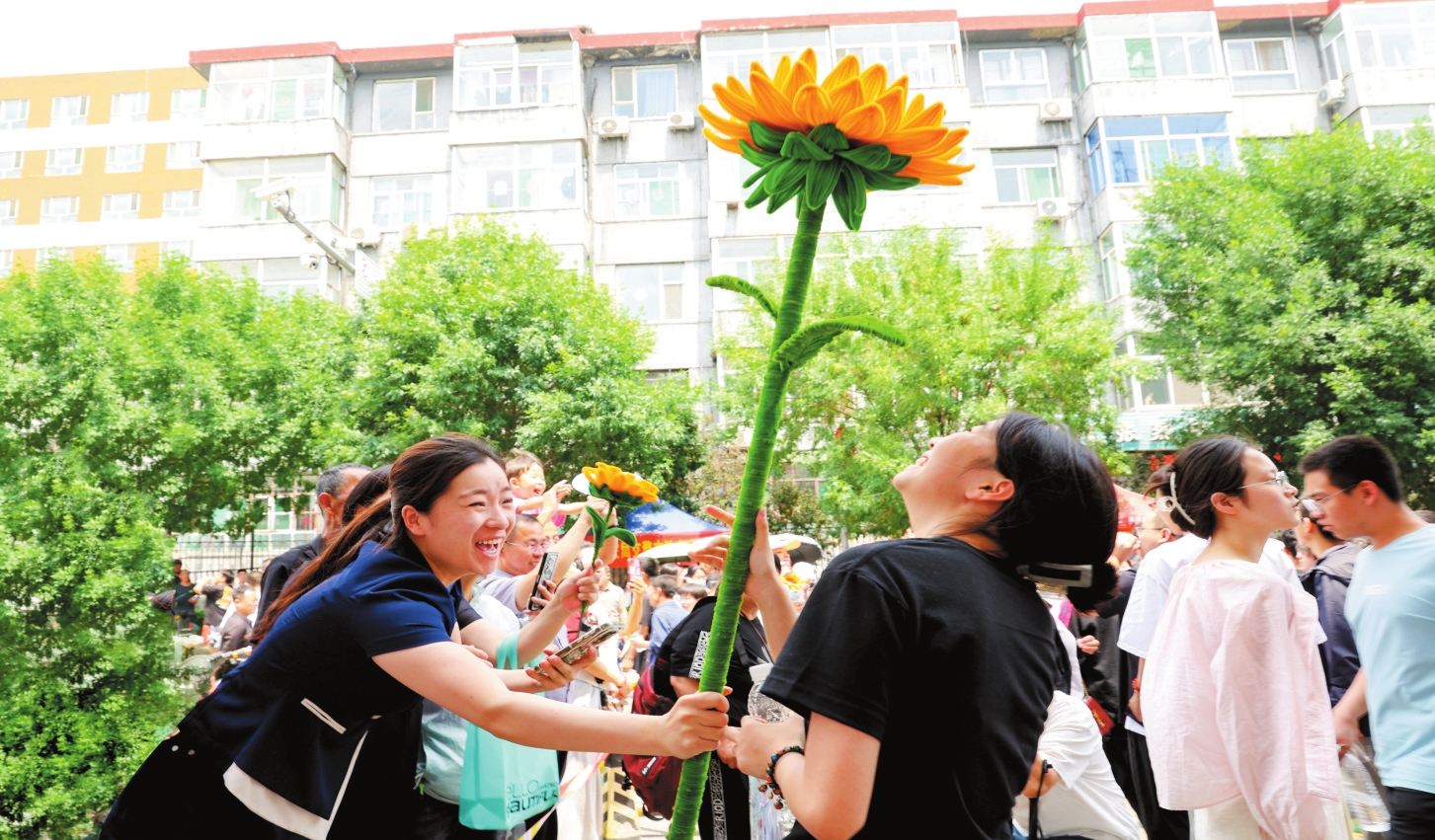 圖為忻州七中考場外,一名考生的姐姐在妹妹走出考場時(shí)送上一朵特大號向日葵,祝妹妹“一舉奪魁”。范琛攝