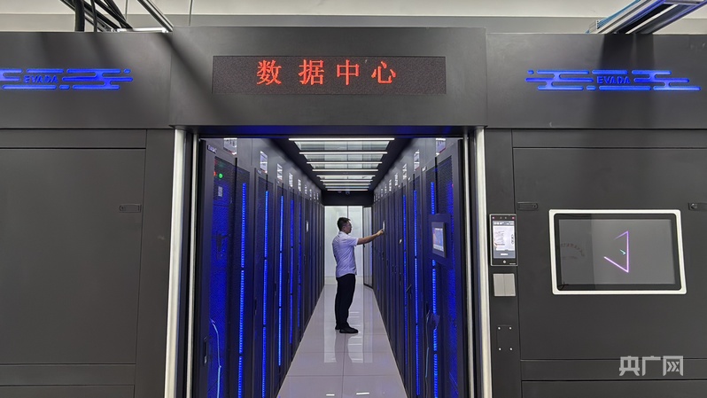 工作人員正在萬(wàn)兆工業(yè)環(huán)網(wǎng)與模塊化核心機(jī)房操作設(shè)備(央廣網(wǎng)記者 張晉鵬 攝)