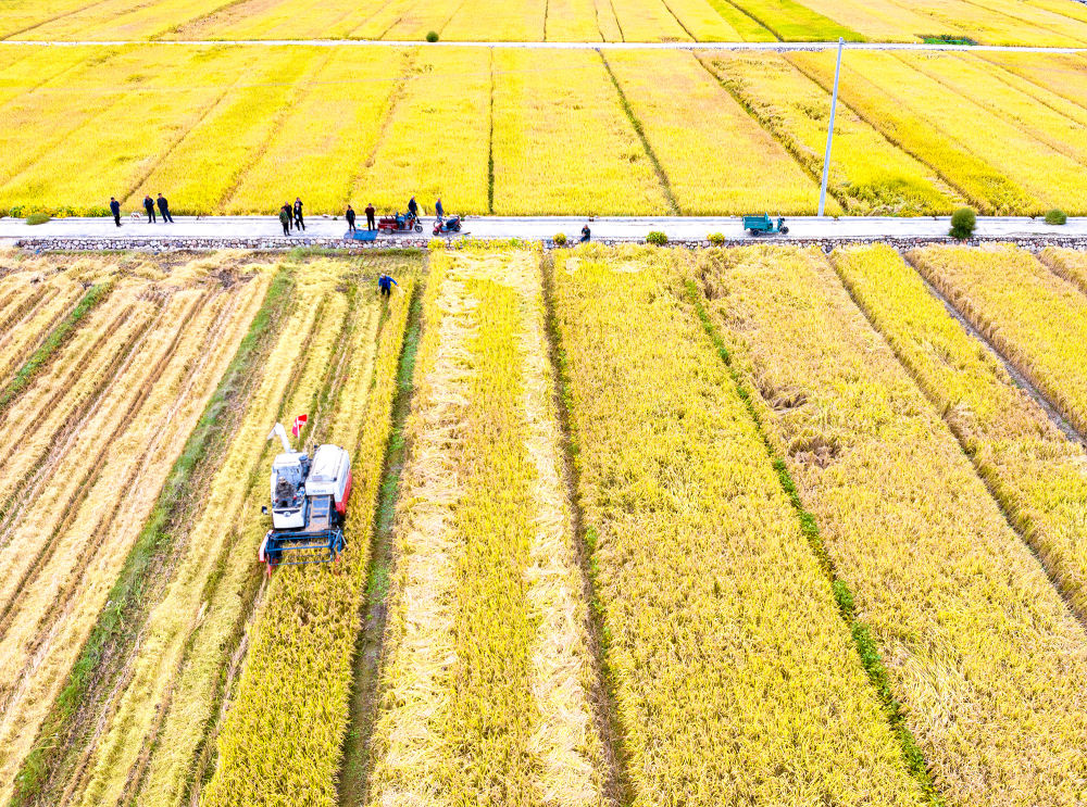 今年,當(dāng)?shù)赜晁渑?,光照充足,水稻長勢喜人。沉甸甸的稻穗壓彎了稻稈,預(yù)計(jì)畝產(chǎn)將再創(chuàng)新高。這片金色的豐收畫卷,不僅展現(xiàn)了現(xiàn)代農(nóng)業(yè)的高效作業(yè),更見證了農(nóng)民們辛勤勞作的碩果,為這個(gè)秋天增添了最動(dòng)人的色彩。(張文軍)