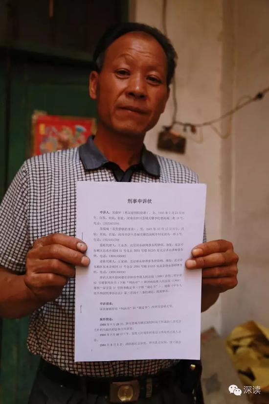 “那個(gè)時(shí)候距離吳留鎖被抓已經(jīng)過去了十幾年,我們都大了,每隔十天半月就能接到哥哥從獄中寫來的信。他在獄中一直喊冤,讓我們?cè)谕饷嫣嫠慈ド砩系脑┣?。因?yàn)槲覀兌际寝r(nóng)村人,沒有什么文化,所以不知道該怎么辦?!眳橇粽湔f。