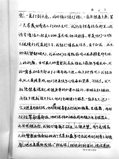劉吉強還撰寫了一封控告信。控告信里,他描述了7天夢魘般的經歷:辦案人員用腳踢他的臉,用手銬把他吊掛在鐵管做的橫梁上拳打腳踢,用電棍擊打身體的各部位。