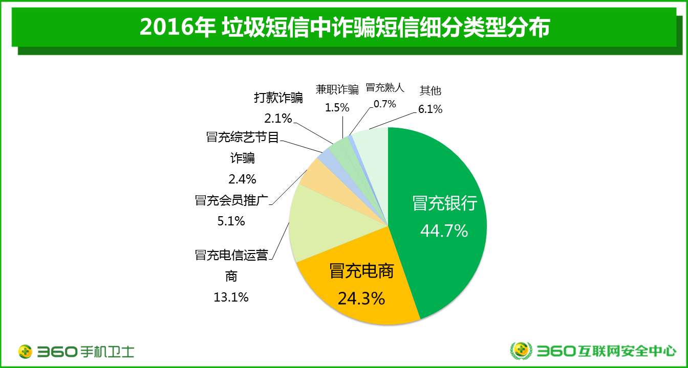 和推廣類短信相比,詐騙類和違法類短信所占比例不高,但是危害卻是最大的,會給手機(jī)用戶造成人身與財產(chǎn)損失。