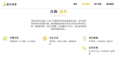 易行泊車(chē)官網(wǎng)上的自我介紹,稱是“自駕前往機(jī)場(chǎng)的最佳選擇”。網(wǎng)絡(luò)截圖