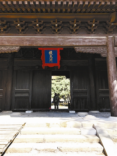 圖為裕陵的護陵員站在門口嚴禁游客入內(nèi)