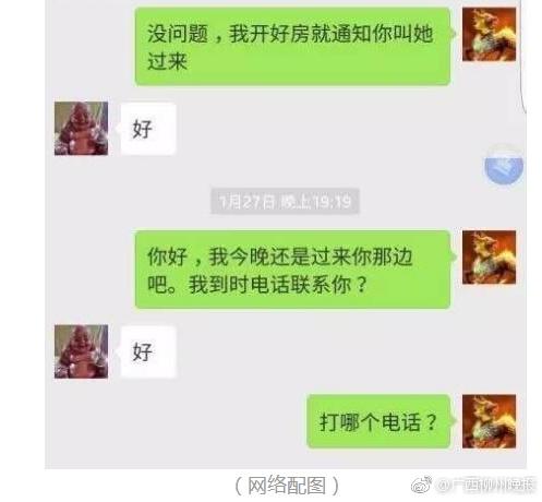 男子閑來無事網(wǎng)上招嫖,孰料“服務員”竟是自己老婆。這本應是劇本上的故事,卻在我們生活中真實發(fā)生了。男子雖然極度心塞,但他還是選擇來到轄區(qū)派出所,懇請民警幫忙勸說其老婆回歸家庭。 事情還得從5月3日上午說起…… 當天,新城派出所來了一名40多歲的男子,他向民警講述了一件很心塞的事。男子叫阿強( 化名),他說2日晚上閑得無聊,精神備感空虛,便想在網(wǎng)上招嫖。一番搜索之后,他便加了一個名為“夢醒時分”的微信號為好友。看到“夢醒時分”的微信頭像是名男子,他估計對方應該是個“雞頭 ”,便問對方是否有特殊服務提供。對方稱有,并開價“100元一個小時”。覺得價格不算太貴,他便同意了。