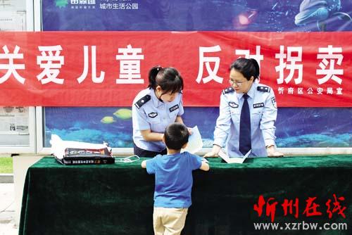 本報(bào)訊 近日,為進(jìn)一步提高人民群眾特別是廣大少年兒童的防拐意識(shí)和防拐能力,忻府區(qū)公安局刑偵大隊(duì)民警在體育廣場(chǎng)開(kāi)展了以“關(guān)愛(ài)兒童、反對(duì)拐賣(mài)”為主題的打拐宣傳活動(dòng)。