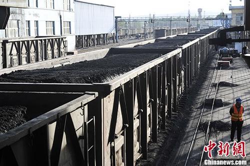 資料圖:煤礦貨運站一列滿載即將外銷煤炭的列車。中新社記者 韋亮 攝