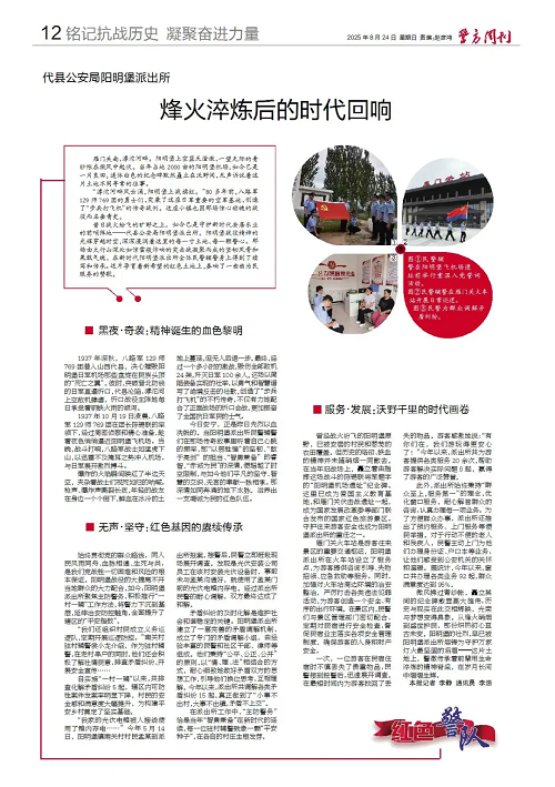 雁門關南,滹沱河畔。陽明堡上空藍天澄澈,一望無際的青紗帳在微風中起伏。當年占地2000畝的陽明堡機場,如今已是一片良田。通體白色的紀念碑默然矗立在沃野間,無聲訴說著這片土地不同尋常的往事。 “滹沱河畔風云涌,陽明堡上戰(zhàn)旗紅?!?0多年前,八路軍129師769團的勇士們,突襲了這座日軍重要的空軍基地,創(chuàng)造了“步兵打飛機”的傳奇戰(zhàn)例。這座小鎮(zhèn)也因那場驚心動魄的戰(zhàn)役而名垂青史。 昔日戰(zhàn)火紛飛的曠野之上,如今已是守護新時代安居樂業(yè)的前哨陣地——代縣公安局陽明堡派出所。陽明堡戰(zhàn)役精神的光輝穿越時空,深深浸潤著這里的每一寸土地、每一顆警心。那場由太行山深處如驚雷般炸響的突擊戰(zhàn)凝聚而成的堅韌風骨和果敢氣魄,在新時代陽明堡派出所全體民警輔警身上得到了續(xù)寫和傳承。這片孕育著新希望的紅色土地上,奏響了一曲曲為民服務的贊歌。 黑夜·奇襲:精神誕生的血色黎明 1937年深秋,八路軍129師769團潛入山西代縣,決心摧毀陽明堡日軍機場那些盤旋在民族頭頂?shù)摹八劳鲋怼薄1藭r,突破晉北防線的日軍直逼忻口,代縣淪陷,滹沱河上空敵機肆虐,忻口戰(zhàn)役主陣地每日承受著鋼鐵火雨的傾瀉。 1937年10月19日凌晨,八路軍129師769團在團長陳錫聯(lián)的率領下,經(jīng)過周密偵察和精心準備,趁著夜色悄悄逼近陽明堡飛機場。當晚,戰(zhàn)斗打響,八路軍戰(zhàn)士如猛虎下山,以迅雷不及掩耳之勢沖入機場,與日軍展開激烈搏斗。 爆炸的火焰瞬間映紅了半邊天空,夾雜著戰(zhàn)士們視死如歸的吶喊。槍聲、爆炸聲撕裂長夜,年輕的戰(zhàn)友在身邊一個個倒下,鮮血在冰冷的土地上蔓延,但無人后退一步。最終,經(jīng)過一個多小時的激戰(zhàn),毀傷全部敵機24架,殲滅日軍100余人。這場以簡陋裝備實現(xiàn)的壯舉,以勇氣和智慧譜寫了絕境反擊的壯歌,創(chuàng)造了“步兵打飛機”的不朽傳奇,不僅有力地配合了正面戰(zhàn)場的忻口會戰(zhàn),更加振奮了全國抗日軍民的士氣。 今日安寧,正是昨日先烈以血洗就的。當陽明堡派出所民警輔警們在那場傳奇故事里聽著自己心跳的頻率,那“以弱勝強”的堅韌、“敢于亮劍”的擔當、“智勇兼?zhèn)洹钡念V?、“赤誠為民”的深情,便超越了時空限制,與如今他們平凡的堅守、智慧的交織、無言的奉獻一脈相承。那深情如同奔涌的地下水脈,滋養(yǎng)出一支竭誠為民的紅色隊伍。 無聲·堅守:紅色基因的賡續(xù)傳承 始終貫徹黨的群眾路線,同人民風雨同舟、血脈相通、生死與共,是我們黨戰(zhàn)勝一切困難和風險的根本保證。陽明堡戰(zhàn)役的大捷離不開當?shù)厝罕姷拇罅ε浜?,如今,陽明堡派出所聚焦主防警務,積極推行“一村一輔”工作方法,將警力下沉到基層,延伸治安防控觸角,全面提升了轄區(qū)的“平安指數(shù)”。 “我們還組織村民成立義務巡邏隊,定期開展巡邏防控?!蹦详P村駐村輔警侯小龍介紹,作為駐村輔警,在走村串戶的同時,他們還會積極了解社情民意,排查矛盾糾紛,開展安全宣傳…… 自實施“一村一輔”以來,共排查化解矛盾糾紛5起,轄區(qū)內(nèi)可防性案件發(fā)案率明顯下降,村民的安全感和滿意度大幅提升,為構建平安鄉(xiāng)村奠定了堅實基礎。 “我家的光伏電箱被人接線使用了箱內(nèi)存電……”今年5月14日,陽明堡鎮(zhèn)南關村村民孟某到派出所報案。接警后,民警立即趕赴現(xiàn)場展開調查。發(fā)現(xiàn)是光伏安裝公司員工在該村安裝光伏設備時,事前未與孟某溝通好,就使用了孟某門前的光伏電箱內(nèi)存電。經(jīng)過派出所民警的耐心調解,雙方最終達成了和解。 矛盾糾紛的及時化解是維護社會和諧穩(wěn)定的關鍵。陽明堡派出所建立了一套完善的矛盾調解機制,成立了專門的矛盾調解小組,由經(jīng)驗豐富的民警和社區(qū)干部、律師等組成。他們秉持“公平、公正、公開”的原則,以“情、理、法”相結合的方式,耐心細致地做好矛盾雙方的思想工作,引導他們換位思考,互相理解。今年以來,派出所共調解各類矛盾糾紛15起,真正做到了“小事不出村,大事不出鎮(zhèn),矛盾不上交”。 在派出所工作中,“主防警務”恰是當年“智勇兼?zhèn)洹痹谛聲r代的延續(xù),每一位駐村輔警就像一顆“平安種子”,在各自的村莊生根發(fā)芽。 服務·發(fā)展:沃野千里的時代畫卷 曾經(jīng)戰(zhàn)火紛飛的陽明堡原野,已被安居的村民和蔥蘢的農(nóng)田覆蓋。但歷史的烙印、鐵血的精神并未隨硝煙一同散去。在當年舊戰(zhàn)場上,矗立著由指揮這場戰(zhàn)斗的陳錫聯(lián)將軍題字的“陽明堡機場遺址”紀念碑。這里已成為愛國主義教育基地,和雁門關伏擊戰(zhàn)遺址一起,成為國家發(fā)展改革委等部門聯(lián)合發(fā)布的國家紅色旅游景區(qū)。守護往來游客安全也成為陽明堡派出所的重任之一。 雁門關火車站是游客往來景區(qū)的重要交通樞紐,陽明堡派出所在火車站設立了服務點,為游客提供咨詢引導、失物招領、應急救助等服務。同時,加強對火車站周邊環(huán)境的治安整治,嚴厲打擊各類違法犯罪活動,為游客創(chuàng)造一個安全、有序的出行環(huán)境。在景區(qū)內(nèi),民警們與景區(qū)管理部門密切配合,定期對民宿進行安全檢查,督促民宿業(yè)主落實各項安全管理制