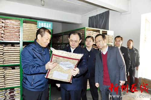 圖為市委書記李俊明在市藥業(yè)集團調研。本報記者 劉紀森 攝