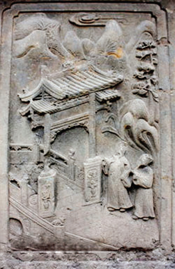 配坊實際上是一座功名石牌坊,上面刊載著武訪疇一家四代人的姓名及朝廷贈封的官爵,咸豐六年(1856)由武訪疇修建。這座石雕牌坊與其它牌坊最大的區(qū)別就是沒有題刻坊名,因此只能稱之為配坊。坐北向南,為四柱三間三樓單檐歇山頂結(jié)構(gòu),牌樓高8米,寬12米,坊體坐落在近1米高的長方形臺基上,立柱仍然采用夾柱石固定。坊頂覆蓋青瓦,正脊飾石雕貔貅裝飾,飛檐翹角,明樓檐下為“圣旨”牌,當(dāng)心間設(shè)兩層小字板,第一層題刻:“贈資政大夫曾祖父廷桂,贈夫人曾祖母李氏;誥贈資政大夫祖父秉壁,誥贈夫人祖母吳氏;誥贈資政大夫父烈,誥封夫人母朱氏。陜西分巡延榆綏兵備道、加四級武訪疇謹(jǐn)建?!钡诙宇}刻“大清咸豐六年歲次丙辰仲夏上院榖旦”。武訪疇借建坊要弘揚祖輩陰德,而祖輩的姓氏大名又不能題刻在母親的節(jié)孝牌坊上,所以,他必須另建一坊才能完整地表達(dá)心愿。實際上,這就是建造配坊的真正目的。也正因此在配坊題刻“龍光錫寵”、“鳳詔褒榮”、“克成先志”、“重裕后昆”等。