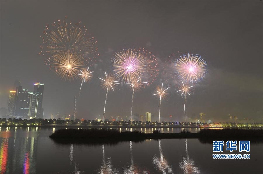2017年1月1日夜晚,長沙橘子洲附近湘江上空綻放絢麗焰火。當(dāng)晚,湖南長沙橘子洲舉行焰火晚會(huì)慶祝新年到來。整場焰火晚會(huì)主題為“多彩星城、魅力長沙”,焰火燃放時(shí)間約20分鐘。 新華社記者 龍弘濤攝