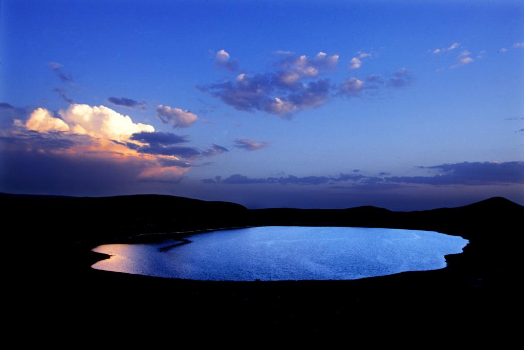 一般意義上的天池是單指馬營海,位于寧武余莊鄉(xiāng)的分水嶺之山巔,海拔約1900米,池面0.8平方公里,水深12米。馬營海山環(huán)樹合,芳草萋萋,綠柳依依;池中碧波蕩漾,游魚逐浪,群鴨戲水,蛙鼓陣陣。晴日登高遠眺,茫茫峻嶺之間出現(xiàn)一塊巨大的無瑕玉璧。紅日映照之下,金光四射,池水通紅,耀眼奪目,古人題名“天池錦鱗”或“天池霞映”,位列寧武古八景之首。池中有天然生長的鯉魚、鰱魚、草魚和鯽魚,肉質(zhì)細膩,味道鮮美,是周邊百姓待客的上等菜肴。每年四月冰消時的“開冰魚”更是絕妙的美味,被視為上等補品,隋唐時是只能皇家品嘗的貢品。魚是哪里來的?老百姓不放魚苗,魚總有枯竭的時候??墒乔О倌陙?,一直在捕魚、一直在吃。有專家判斷,魚只有在冷熱水交匯的地方才會自行繁殖,說明池下有溫泉。春天,地表溫度高了,