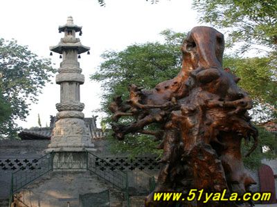 遺憾的是,明朝的廣濟寺和大槐樹,早已被汾水沖毀,幸而在古大槐樹的東旁同根孽生出第二代古槐,這就是我們見到的那棵高大挺拔、枝繁葉茂的古槐,是同根孽出的第三代。三代古槐就象遷民子孫世代繁衍相傳一樣生生不息,讓人感慨系之。為了紀念古槐,1911年在漢代古槐處建立了一座雕梁畫棟、飛檐斗拱、精巧玲瓏、別有風格的碑亭。亭內(nèi)豎碑1通,陽面刻著“古大槐樹處”五個大字,碑后刻著當年移民的簡要情況介紹。在碑亭的右側(cè),建有“飲水思源”茶室,游人可在此飲茶思古。碑亭前面30米處建有古色古香的牌坊,四拄三門,上懸匾額。