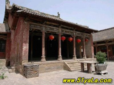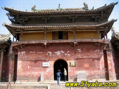 山門最古,為金時原構(gòu),五開間,兩層,下層磚砌高臺,中柱上裝青石門框及板門,門框上線刻花紋,圖案秀美。上層施平座及勾欄,粱架現(xiàn)整簡潔,結(jié)構(gòu)已具元代爬梁的雛形。屋頂琉璃為明代補(bǔ)制,鮮麗勁秀。這種高臺以上的門廡或殿宇,見宇敦煌壁畫,實(shí)物中少有。 (責(zé)任編輯:李冬梅) |