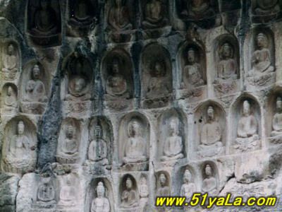 千佛崖在山西霍縣南7.5公里郭莊村山腰。山巒聳峙,山花爛漫,摩崖造像隱現(xiàn)其間。始刻于唐代,宋、元時屢有造鑿,直至明正德五年(1501年)始結(jié)束。本尊大佛高約8米,下部刻有唐貞觀以及天寶五年(公元746年)、長慶二年(822年)等題記。千手千眼觀音像高約2米,為元代所造。其余小佛多為三軀一組(一佛二菩薩或一佛二弟子),亦有單佛一龕者,刻工精湛,造型生動,極富民間特色。 (責(zé)任編輯:李冬梅) |