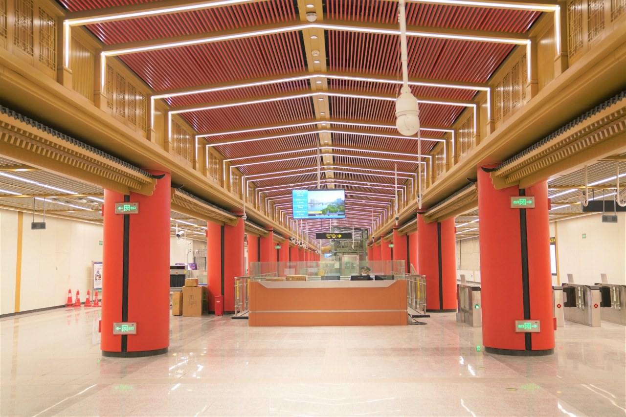 而西橋站的工業(yè)裸裝墻面,又透著另一番味道:裸露的鋼鐵肌理帶著利落的線條,與前面站點(diǎn)的古雅形成有趣的對(duì)話,讓人忽然懂了——山西的文化,既能藏在飛檐斗拱里,也能綻放在現(xiàn)代的棱角中。