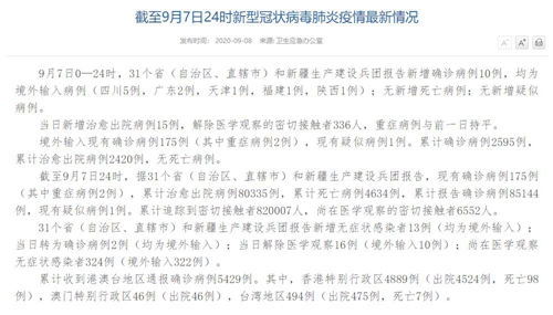 國家衛(wèi)健委:9月7日新增確診病例10例 均為境外輸入病例 |