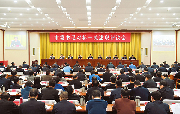 圖為市委書記對標一流述職評議會會場。 本報記者 李聯(lián)軍攝