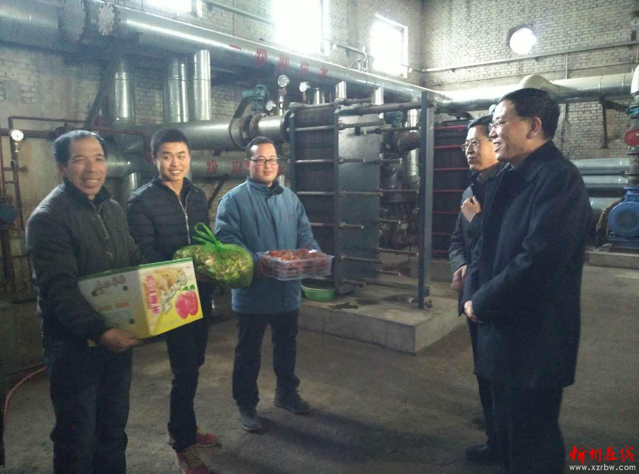 圖為副市長(zhǎng)武憲堂在禹鑫公司運(yùn)輸公司供熱站慰問(wèn)堅(jiān)守崗位的一線職工