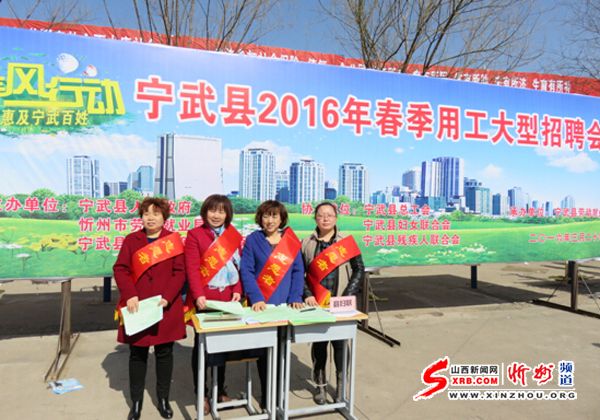 山西新聞網(wǎng)忻州訊 3月26日,寧武縣人民政府、縣人社局、縣勞動就業(yè)局、縣婦聯(lián)等單位在體育場聯(lián)合開展了寧武縣2016年“春風(fēng)行動”春季用工大型招聘會,這次春風(fēng)行動共有208個用人單位,提供1883個就業(yè)崗位。寧武縣婦聯(lián)在招聘會現(xiàn)場設(shè)立了專門的宣傳咨詢臺,發(fā)放宣傳資料,開展婦女創(chuàng)業(yè)就業(yè)宣傳咨詢服務(wù)和登記服務(wù)。在招聘會上,根據(jù)婦女群體的特點,有針對性提供家政、服務(wù)、服裝等多種就業(yè)崗位,吸引了寧武縣各領(lǐng)域求職婦女前來參加,為促進(jìn)女性就業(yè)取得了良好效果。