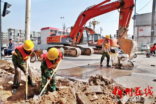 圖為勝利街改造工程開挖道路管線探槽現(xiàn)場(梁春霞 攝)