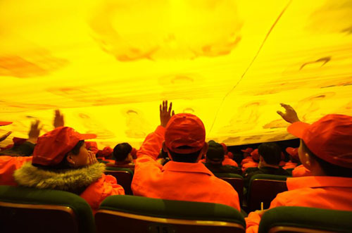“第一次觀看,感到很震撼,心里有一種釋放的感覺(jué)!非常感謝!”年近60歲的環(huán)衛(wèi)工楊師傅激動(dòng)地說(shuō)。獨(dú)特、豐富的舞臺(tái)語(yǔ)言和奇幻無(wú)比的聲光電藝術(shù),帶領(lǐng)他們回顧、展望人生中的點(diǎn)滴片段,引起共鳴。與城市環(huán)衛(wèi)工人一樣,無(wú)論春夏秋冬每天堅(jiān)守崗位10余個(gè)小時(shí)的五臺(tái)山環(huán)衛(wèi)工人,大多年歲較大。他們?nèi)諒?fù)一日,年復(fù)一年,用手中的大掃帚在風(fēng)霜雨雪中與垃圾和塵埃做著不懈的“斗爭(zhēng)”,守護(hù)著景區(qū)通往各個(gè)景點(diǎn)的條條道路,是文明衛(wèi)生景區(qū)最可愛(ài)的人之一。90分鐘,很短暫,但大家的心靈得到了一種釋然,一種寬慰,著實(shí)是一種最實(shí)惠的“福利”。