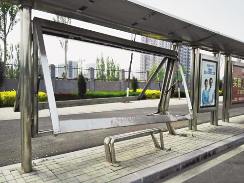 見到記者拍照,一位巡邏民警說(shuō),這個(gè)站牌是前兩天被車撞壞的,因?yàn)槭切侣?,公交站牌還未投入使用。這條道路行人車輛稀少,肇事車輛已不知去向,也沒有目擊者。一位開車路過(guò)此處的司機(jī)說(shuō),這么漂亮的站牌,被車撞成這樣,看著讓人心疼,希望有關(guān)部門加強(qiáng)監(jiān)管,嚴(yán)格懲罰力度。同樣,廣大市民也應(yīng)積極行動(dòng)起來(lái),愛護(hù)公共設(shè)施,維護(hù)候車環(huán)境。圖為云中北路慘遭破壞的公交站牌(張志遠(yuǎn) 孫明)