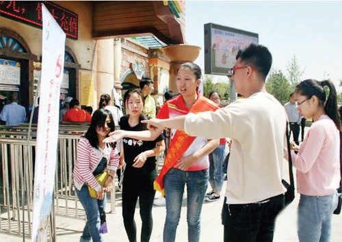 會后,工作人員在景區(qū)內(nèi)張貼了忻州申辦“2016年山西省旅游發(fā)展大會”投票海報,并為游客講解活動內(nèi)容及投票方法,倡導(dǎo)人人助力、人人投票。圖為工作人員為游客講解投票事宜(忻仁)