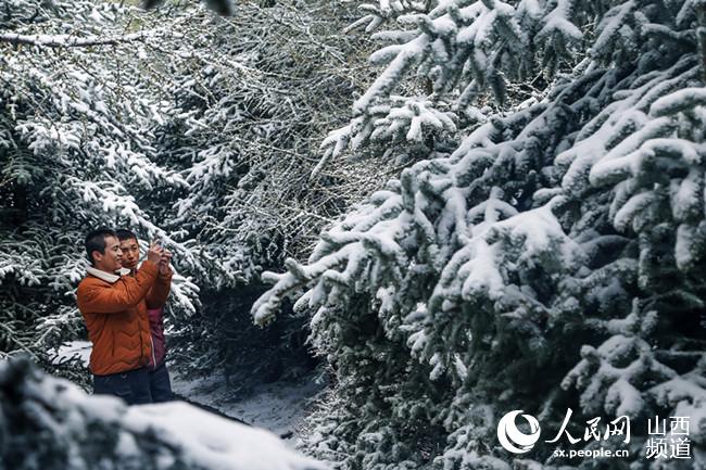 人民網(wǎng)寧武5月12日電(白鴻濱)12日凌晨,山西蘆芽山萬年冰洞景區(qū)迎來一場降雪。我國傳統(tǒng)節(jié)氣立夏已過一周,大部分地方已經(jīng)花紅柳綠,暖意融融。蘆芽山萬年冰洞景區(qū)卻雪花伴著大風(fēng)飛舞而來,頃刻間景區(qū)內(nèi)白雪皚皚,翠綠的樹枝披上了一層銀裝。來自臺灣的游客被這場突如其來的大雪驚呆了,紛紛拍照留念,難掩興奮之情?!跋募緛磉@里旅游居然能看到冬季的雪景,真是太幸運了!”一位游客感嘆到。