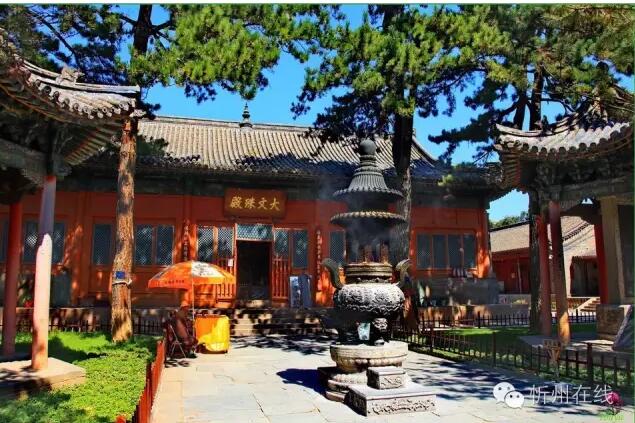 文殊殿重建于清乾隆十一年(公元1746年),大佛殿重建于清光緒二十五年(1899),均系木結(jié)構(gòu)建筑。明七暗三,上為四阿頂,下為四出廊,108根木柱圍在四周,前置重檐抱廈,雕梁畫棟,非常壯觀。