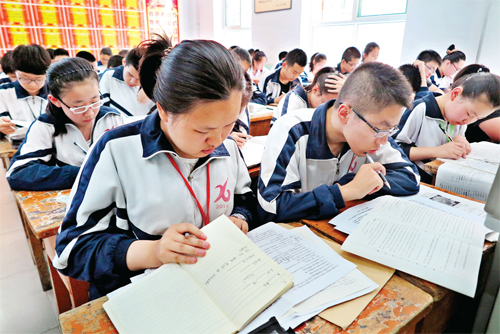 忻州市招生委員會(huì)中招辦亢增高主任介紹說(shuō),中考涉及千家萬(wàn)戶和每個(gè)考生的切身利益,備受社會(huì)的廣泛關(guān)注,中考及其錄取工作直接關(guān)系到教育公平公正和社會(huì)穩(wěn)定。為了確保中考順利進(jìn)行,給廣大考生創(chuàng)造一個(gè)和諧平安、公平公正的優(yōu)良考試環(huán)境,市招委要求各縣(市、區(qū))招生委員會(huì)加大考試環(huán)境的綜合治理,統(tǒng)籌教育、公安、宣傳、保密、電力、通信、郵政、衛(wèi)生、食藥監(jiān)、環(huán)保、城建、無(wú)管委等部門,強(qiáng)化措施,明確職責(zé),通力合作,按照中考工作流程層層建立應(yīng)急機(jī)制,無(wú)論涉及哪方面的突發(fā)事件,都有相對(duì)應(yīng)的應(yīng)急預(yù)案和措施,確保中考期間交通暢通、供電安全、無(wú)噪音污染、食品安全、無(wú)消防事故,共同創(chuàng)建良好的考試環(huán)境,圓滿完成今年的中考工作。同時(shí)希望全市廣大考生端正心態(tài),沉著、誠(chéng)信應(yīng)考。圖為6 月16 日下午,忻州六中315 班初三學(xué)生正在專心致志自習(xí),進(jìn)行中考前的最后沖刺。(魯明強(qiáng) 攝影報(bào)道)