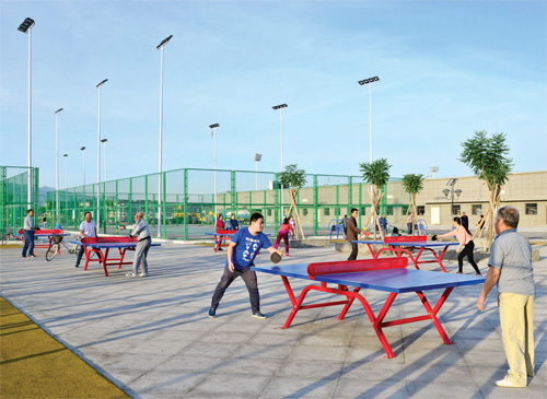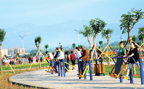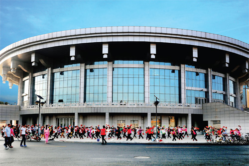 6月13日清晨,代縣成百上千的市民在新建的新城體育中心休閑鍛煉。有的散步,有的玩健身器械,有的打乒乓球、羽毛球,有的跳廣場(chǎng)舞,各取所需,其樂(lè)融融。