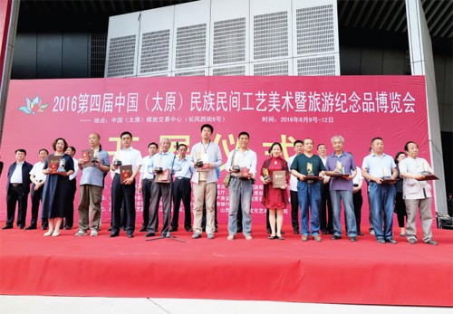 本報(bào)訊 6 月9 日至12 日,由中國民族民間工藝美術(shù)家協(xié)會、山西省經(jīng)信委、省旅游局、省文聯(lián)、省貿(mào)促會、山西中華文化促進(jìn)會、山西廣播電視臺、山西日報(bào)傳媒集團(tuán)共同主辦,山西省民間文藝家協(xié)會、省民間工藝美術(shù)家協(xié)會等承辦的2016 第四屆中國(太原)民族民間工藝美術(shù)暨旅游紀(jì)念品博覽會在太原煤炭交易中心舉行。來自全國20 多個(gè)省市及港臺地區(qū)的200 多家工藝美術(shù)和旅游紀(jì)念品企業(yè)參展,薈萃展出了數(shù)千件工藝美術(shù)大師的精品力作。