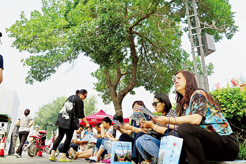 考場外,烈日炎炎,來自四面八方的考生家長們在樹蔭下、街道旁或靜靜地等候,或相互交流有關(guān)孩子們的話題,其緊張的心情,一點(diǎn)也不亞于考場內(nèi)正在考試的考生們??键c(diǎn)處,各愛心團(tuán)體、商家搭亭設(shè)點(diǎn),向考生和家長們免費(fèi)贈送礦泉水、降暑飲料、學(xué)習(xí)資料,還有專車等待免費(fèi)接送考生。也有不少教育培訓(xùn)機(jī)構(gòu)和學(xué)校組織人員向家長們發(fā)放資料,推介各自的教育特色和辦學(xué)水平。交警們堅(jiān)守崗位,在烈日下疏導(dǎo)交通,各考點(diǎn)周邊交通環(huán)境秩序井然。