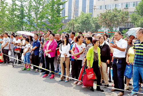 因?yàn)橹锌迹紙鐾獠庞芯墼谝黄鸬牟煌巳?;因?yàn)榍橄悼忌?,所有人的?jiān)守,都與愛有關(guān)。于是一年一度的考場外,愛,成為一道動人的風(fēng)景。