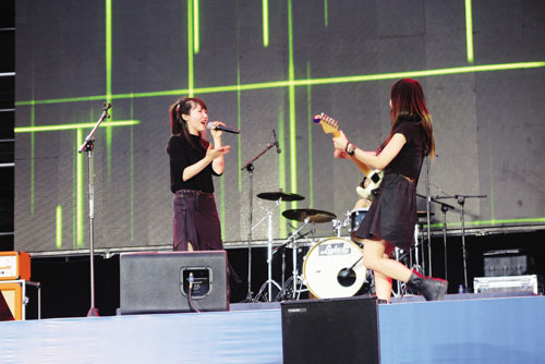 “希望你們能記住我們,我們是瞳樂隊?!闭l也想不到熟練操作吉他、貝司、架子鼓的是四位美女。這支來自北京,由四個熱愛搖滾、個性分明的90后女生組成的樂隊,毫不遜色于大老爺們兒,她們將音樂感染力和舞臺視覺上的沖擊力融為一體,加上主唱獨特嗓音演唱的躁動或安靜的歌,敲打著觀眾的靈魂。有觀眾戲稱,這就是美女的力量。