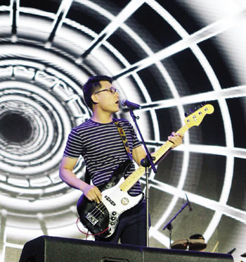 拖著縫了12針的左腿,吉他手梁健毅然登上了舞臺,齒輪橡皮缺了他可不行。“希望給予我力量吧!”主唱周棟的嘶吼,向全場觀眾詮釋了什么叫硬搖滾,帶動著觀眾跟著節(jié)奏跳起來。齒輪橡皮樂隊已經(jīng)簽約恒大音樂,曾參加去年“漾青春”搖滾音樂節(jié)演出。