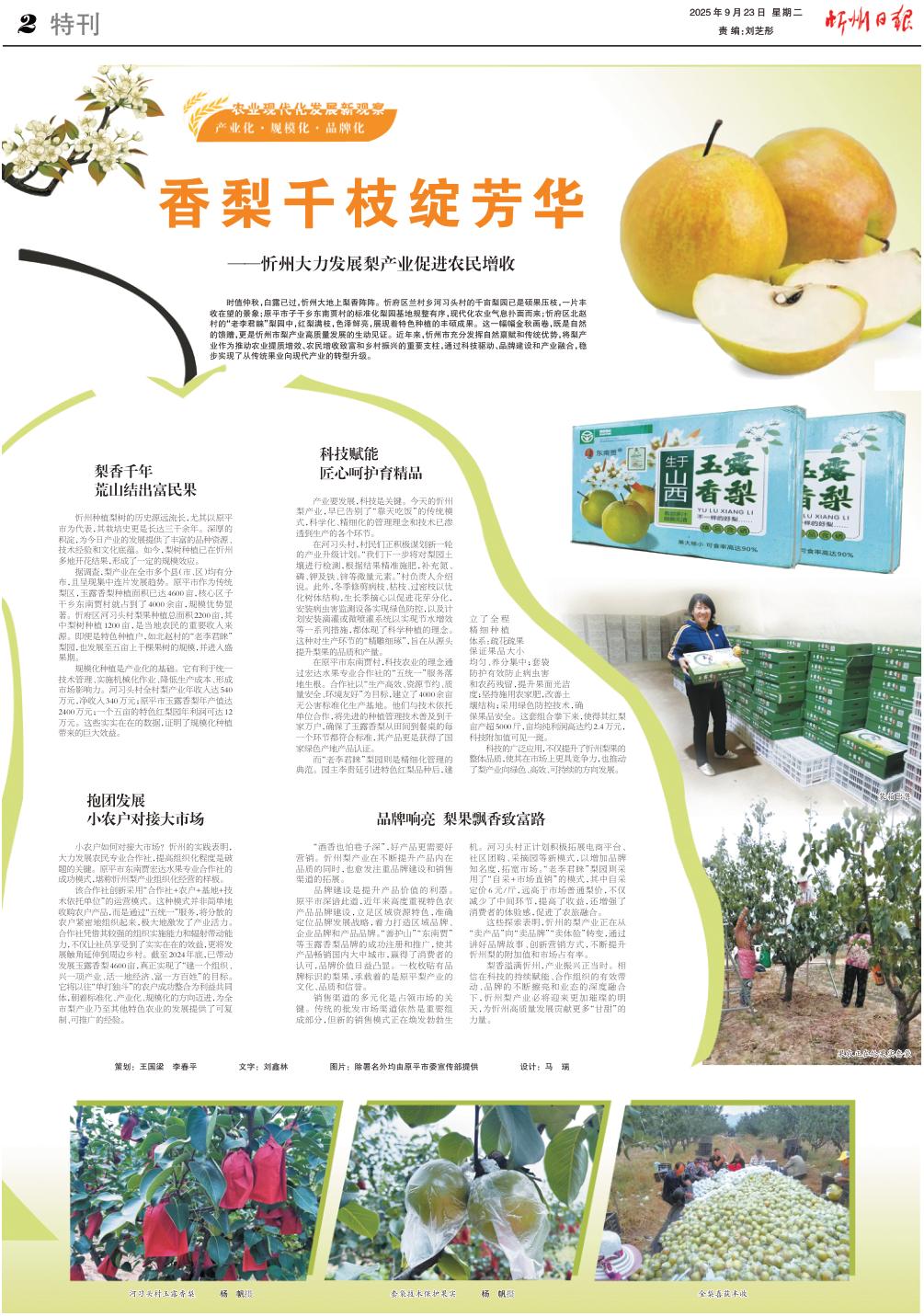 時(shí)值仲秋,白露已過,忻州大地上梨香陣陣。忻府區(qū)蘭村鄉(xiāng)河習(xí)頭村的千畝梨園已是碩果壓枝,一片豐收在望的景象;原平市子干鄉(xiāng)東南賈村的標(biāo)準(zhǔn)化梨園基地規(guī)整有序,現(xiàn)代化農(nóng)業(yè)氣息撲面而來;忻府區(qū)北趙村的“老李君睞”梨園中,紅梨滿枝,色澤鮮亮,展現(xiàn)著特色種植的豐碩成果。這一幅幅金秋畫卷,既是自然的饋贈(zèng),更是忻州市梨產(chǎn)業(yè)高質(zhì)量發(fā)展的生動(dòng)見證。近年來,忻州市充分發(fā)揮自然稟賦和傳統(tǒng)優(yōu)勢,將梨產(chǎn)業(yè)作為推動(dòng)農(nóng)業(yè)提質(zhì)增效、農(nóng)民增收致富和鄉(xiāng)村振興的重要支柱,通過科技驅(qū)動(dòng)、品牌建設(shè)和產(chǎn)業(yè)融合,穩(wěn)步實(shí)現(xiàn)了從傳統(tǒng)果業(yè)向現(xiàn)代產(chǎn)業(yè)的轉(zhuǎn)型升級。