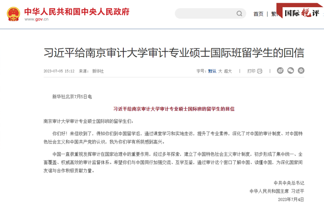 就在前一天,中國(guó)國(guó)家主席習(xí)近平給這個(gè)碩士國(guó)際班的留學(xué)生回信,鼓勵(lì)他們與中國(guó)同行加強(qiáng)交流、互學(xué)互鑒,通過(guò)審計(jì)這個(gè)窗口了解中國(guó)、讀懂中國(guó),為深化國(guó)家間友誼與合作積極貢獻(xiàn)力量。這封回信讓吳娜班上的37位學(xué)生非常振奮。
