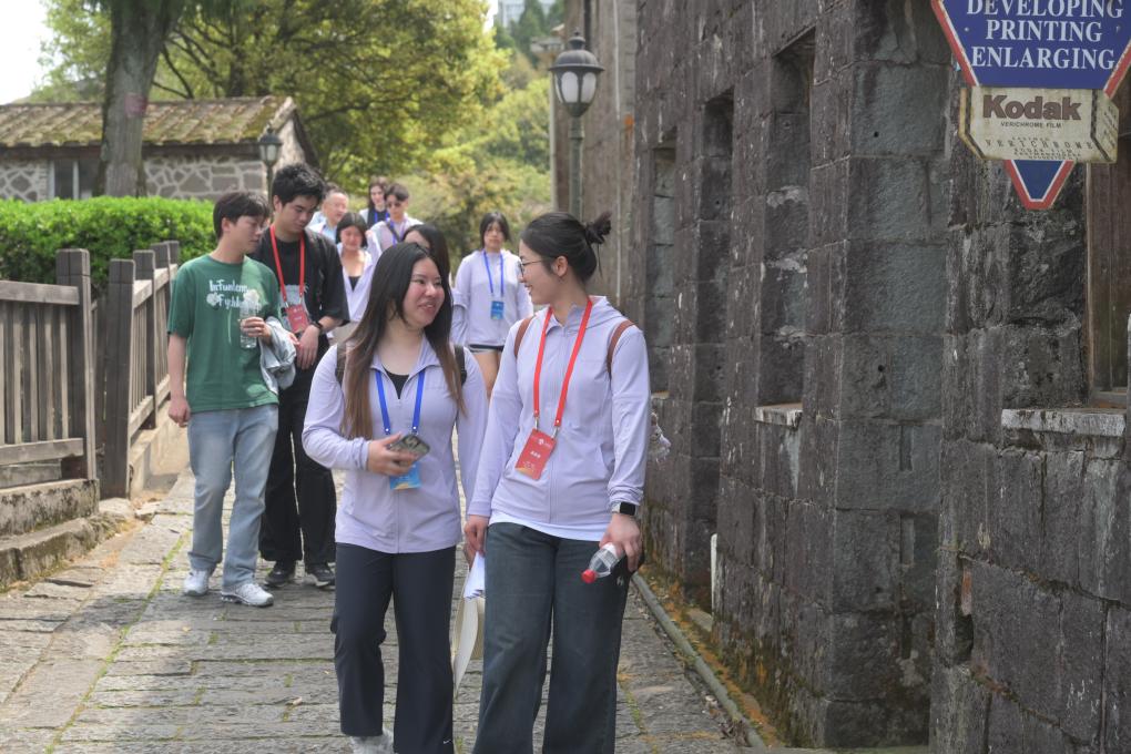 3月25日,福州大學外國語學院學生(前右)與美國太平洋大學學生(前左)在福州鼓嶺老街漫步交流。當日,來自美國俄勒岡大學、布朗大學、奧斯威格高級中學等校的美國學生與福州大學學生齊聚福州鼓嶺,參加“讀懂中國 相約福建”友好交流活動。兩國青少年走訪鼓嶺老街、萬國公益社、柳杉王公園等,感受鼓嶺百年中外交融歷史風貌,了解中美交往往事,暢談期待與希望,再續(xù)中美民間友好交往的“鼓嶺故事”。 新華社記者林善傳攝