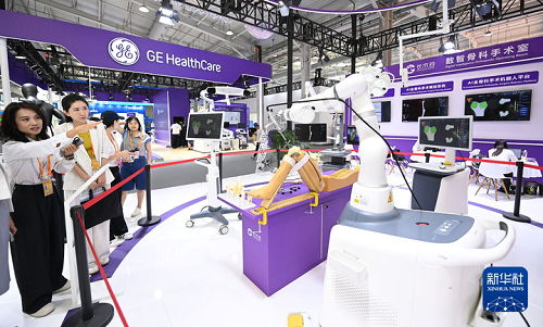 9月9日,參觀者在服貿(mào)會展廳參觀“數(shù)智骨科手術(shù)室”。新華社發(fā)