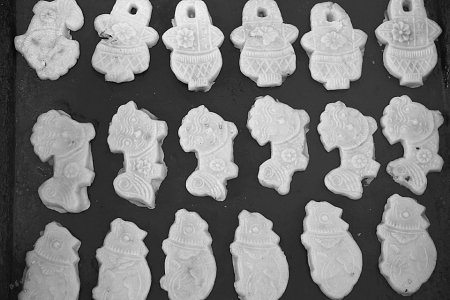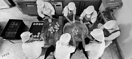3.眾人忙碌著制作月餅。