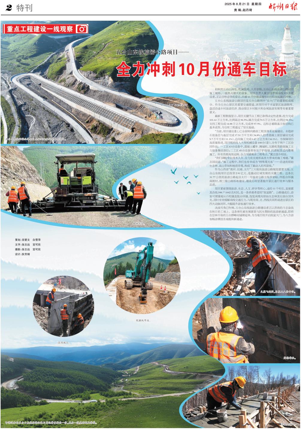 決戰(zhàn)號角已吹響,五臺山東線旅游公路建設(shè)者正以昂揚(yáng)的斗志奮戰(zhàn)在秋日的工地上。這條寄托著發(fā)展愿景與民生期盼的旅游新通道,即將在層林盡染的五臺群峰間鋪展延伸,為當(dāng)?shù)匕傩臻_啟致富大門,為八方游客暢游佛國圣境提供新通途。