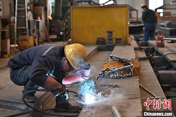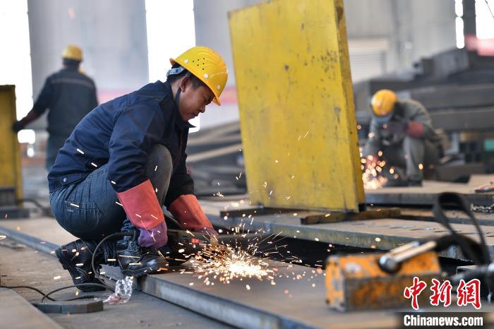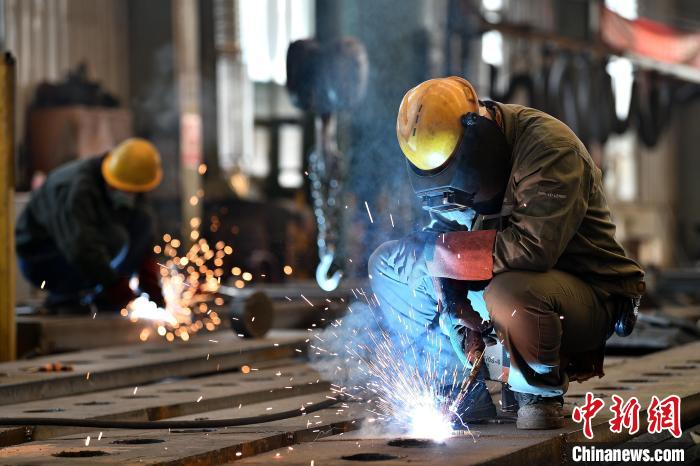 工人在車間氣保焊作業(yè)。 中新網記者 韋亮 攝