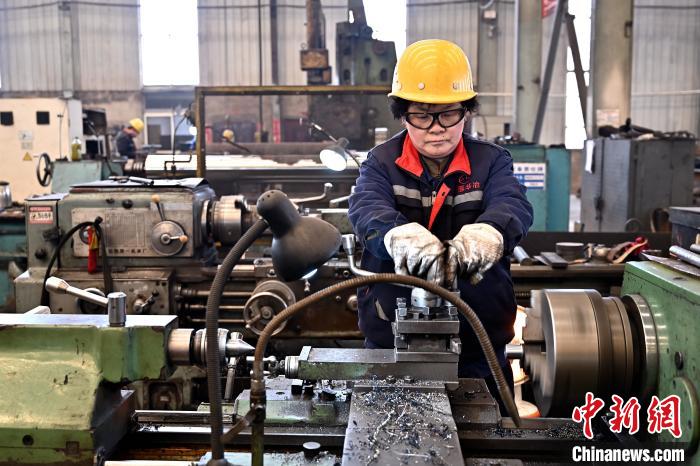 工人在車間利用車床打磨作業(yè)。 中新網記者 韋亮 攝