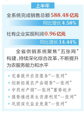本報(bào)訊(記者高瑋)7月21日,全省供銷系統(tǒng)上半年經(jīng)濟(jì)運(yùn)行分析暨“五張網(wǎng)”構(gòu)建現(xiàn)場(chǎng)推進(jìn)會(huì)在長治市武鄉(xiāng)縣召開。今年以來,全省供銷系統(tǒng)以“五張網(wǎng)”構(gòu)建為統(tǒng)領(lǐng),推動(dòng)供銷工作全面提質(zhì)增效,經(jīng)濟(jì)運(yùn)行穩(wěn)定向好。上半年,全系統(tǒng)完成銷售總額588.48億元,同比增長4.58%;社有企業(yè)實(shí)現(xiàn)利潤0.96億元,同比增長14.44%。