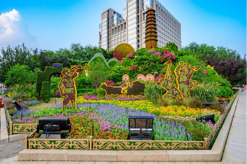 從建國門到復(fù)興門,10座花壇跨越了80余年的歷程,既展現(xiàn)了中國人民抗日戰(zhàn)爭時期的艱苦卓絕、眾志成城,也描繪了新時代國家日新月異的發(fā)展以及人民美好生活的場景。