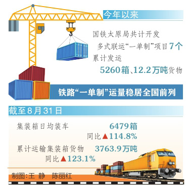 在持續(xù)拓展集裝箱運(yùn)輸品類的同時,國鐵太原局還積極優(yōu)化實(shí)施多式聯(lián)運(yùn)“一單制”運(yùn)輸模式。今年以來,先后聯(lián)合17家企業(yè)開發(fā)了生鐵、鉻鐵、化肥、焦炭等鐵水聯(lián)運(yùn)全程物流產(chǎn)品,實(shí)現(xiàn)山西至全國各主要港口航線“一單到底”。今年以來,國鐵太原局共計開發(fā)多式聯(lián)運(yùn)“一單制”項(xiàng)目7個,累計發(fā)運(yùn)5260箱、12.2萬噸貨物,鐵路“一單制”運(yùn)量穩(wěn)居全國前列。